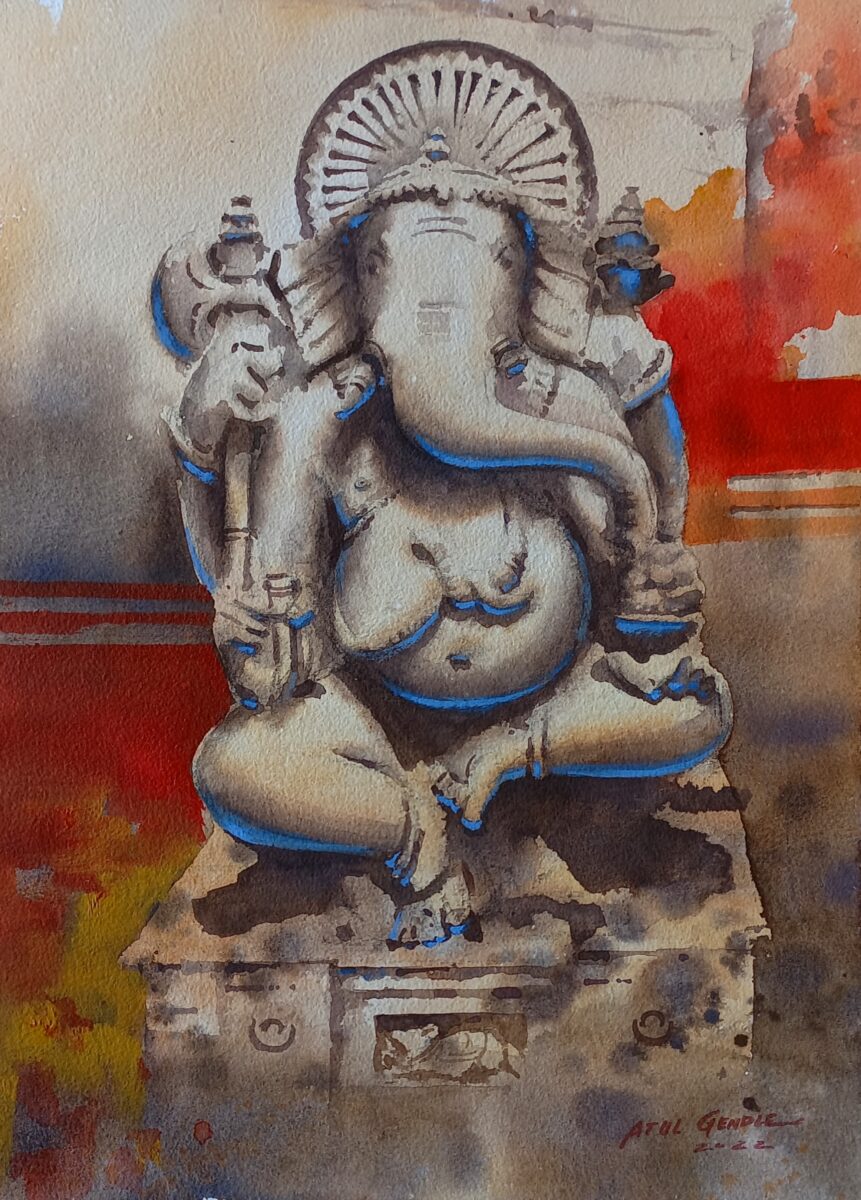 Gajanan 04 *This painting is already sold but can be remade on your request.Please contact me for any further information. Size: 11 x 15 Inches Medium: Watercolor on Paper Price: 75,000 Rs Enquiry Loading