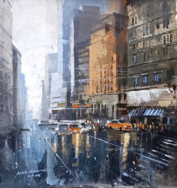 NYC *This painting is already sold but can be remade on your request.Please contact me for any further information. Size: 15 x 16 Inches Medium: Acrylic on Canavs Price: 75,000 Rs Enquiry Loading